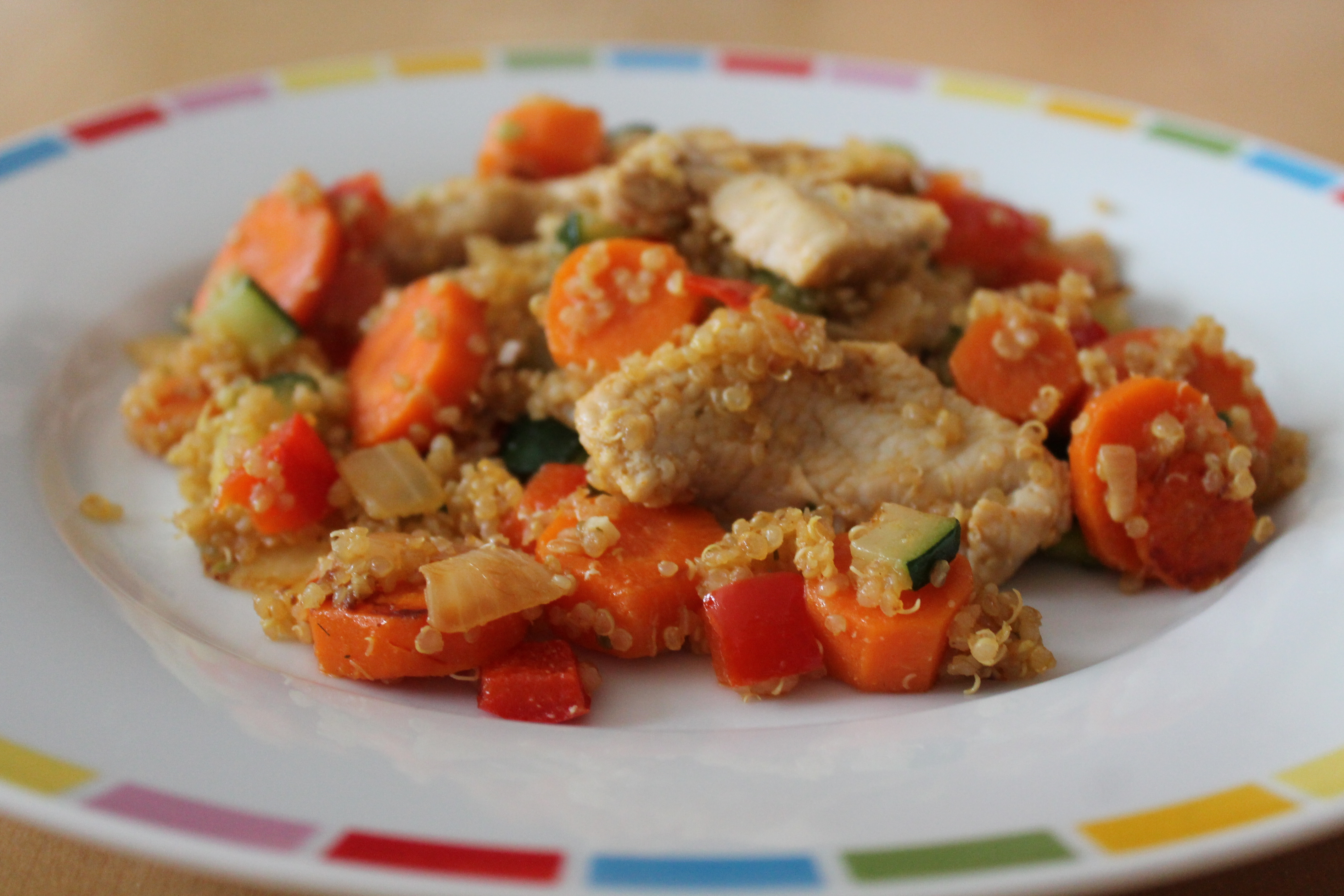 It’s time for a new lunch recipe! Today I’ll present you a turkey-quinoa-wok.