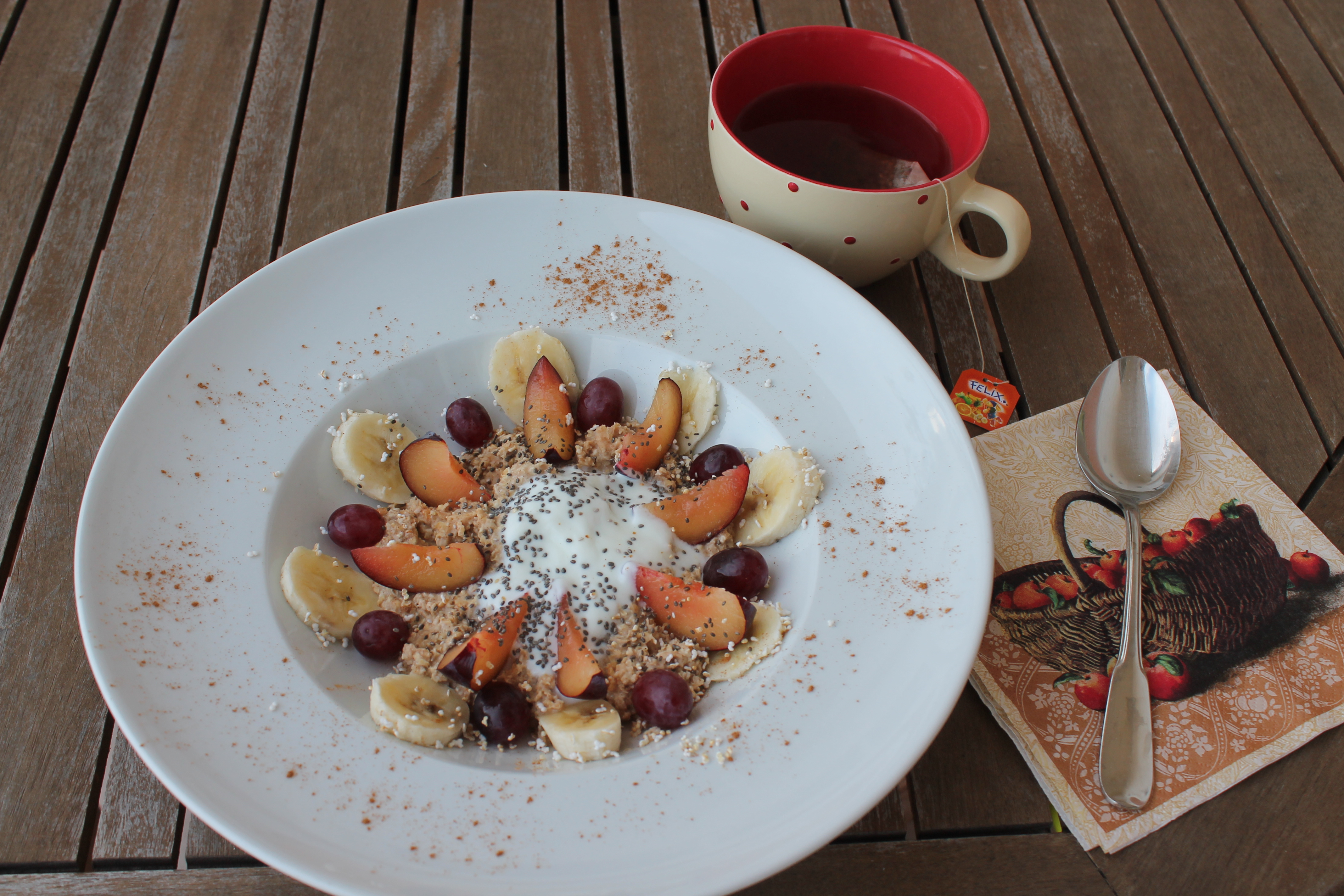 after a wonderful weekend my day started with a walk with my dog and tasty vanilla-cinnamon-oatmeal. After breakfast it’s time for round one at the gym: 1 hour cardio. Later I’ll be back for round two with my boyfriend: weight training.