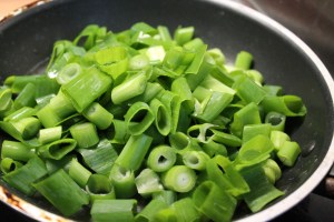 - wash escallion, cut it into pieces, fry in a pan with some drops olive oil
