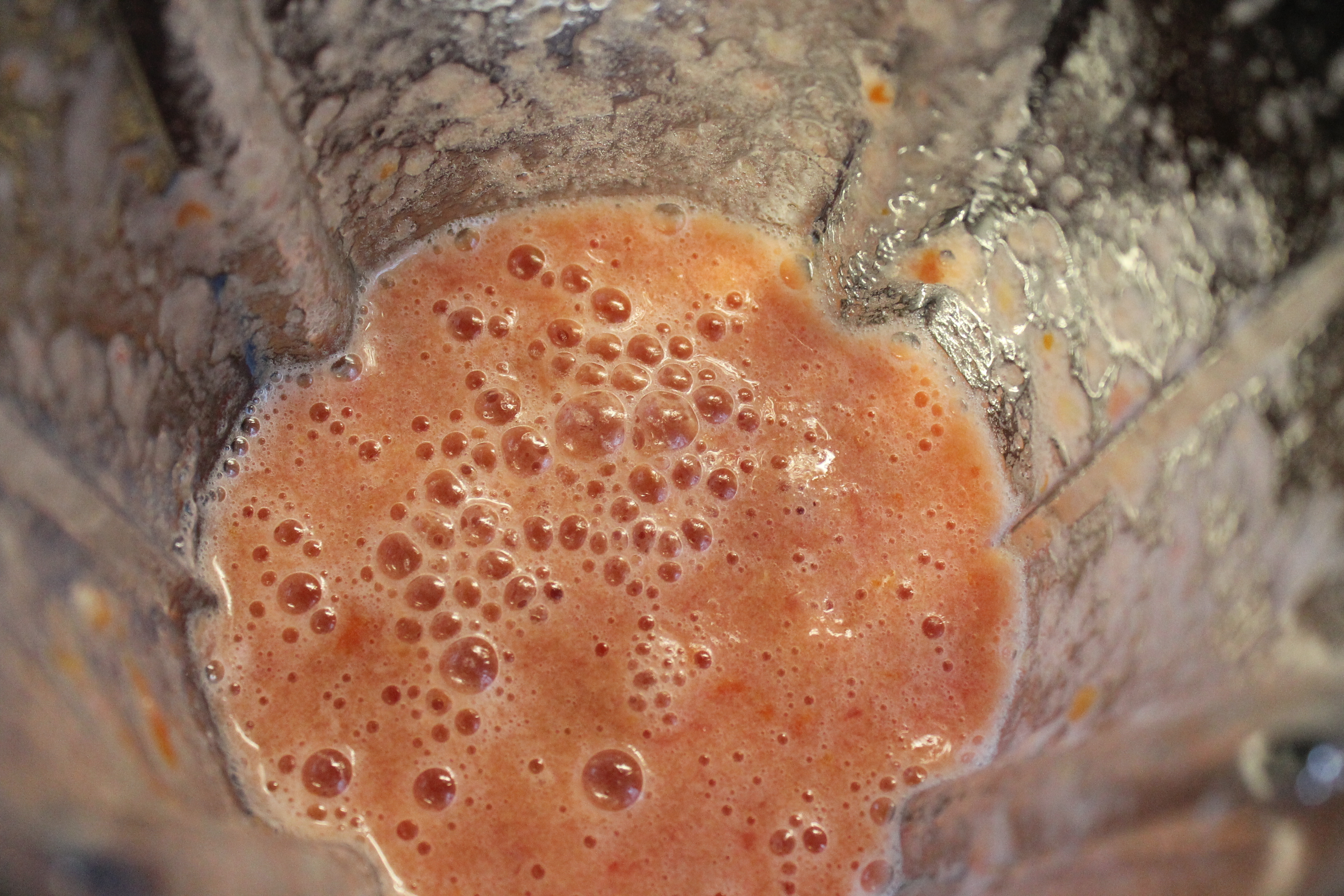 - klein schneiden und in einem Mixer geben => zu einer „Soße“ mixen
