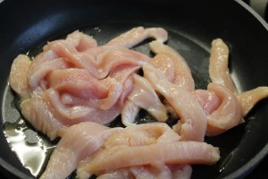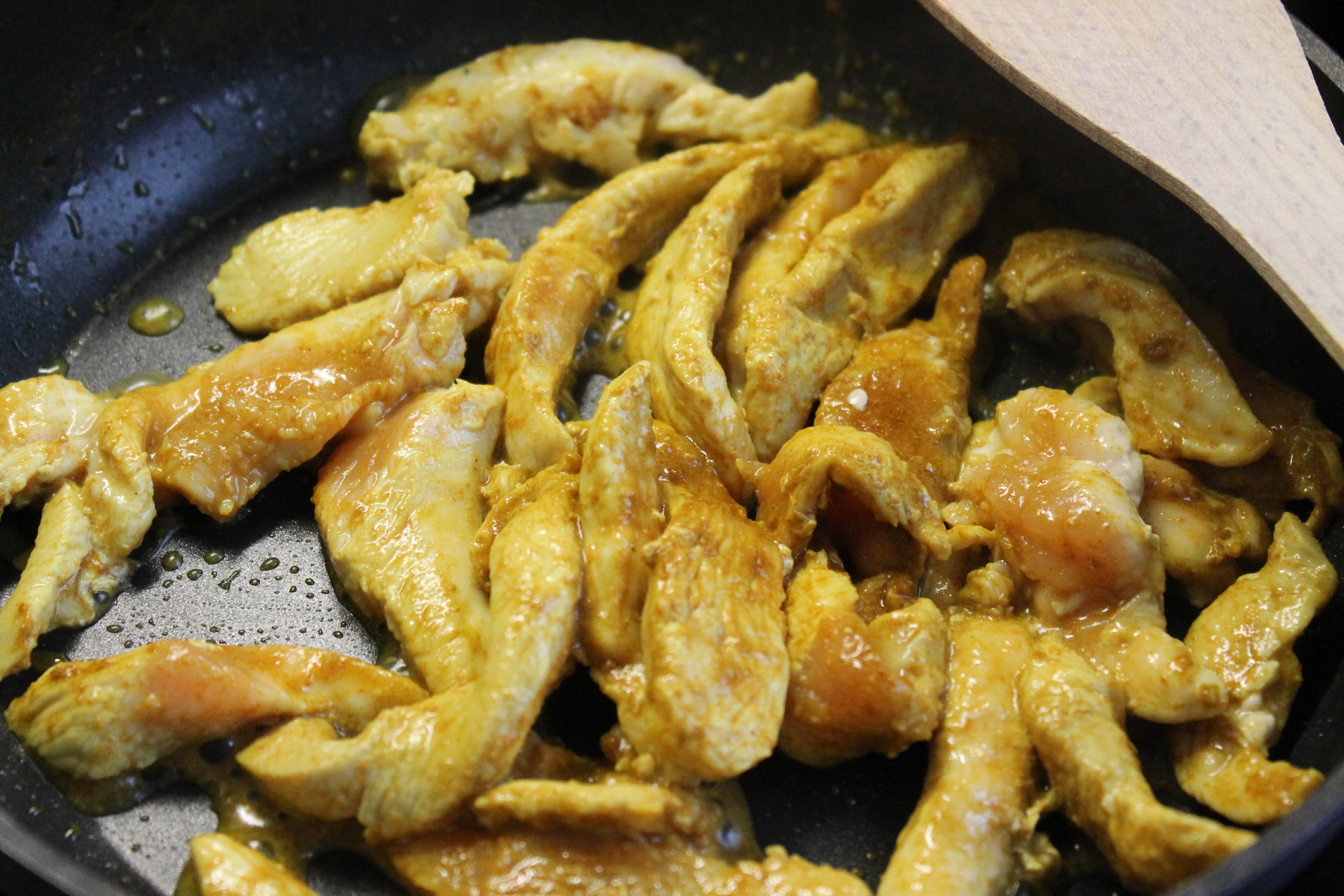 - fry the chicken in a non stick pan with a little bit coconut oil