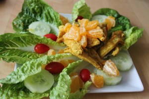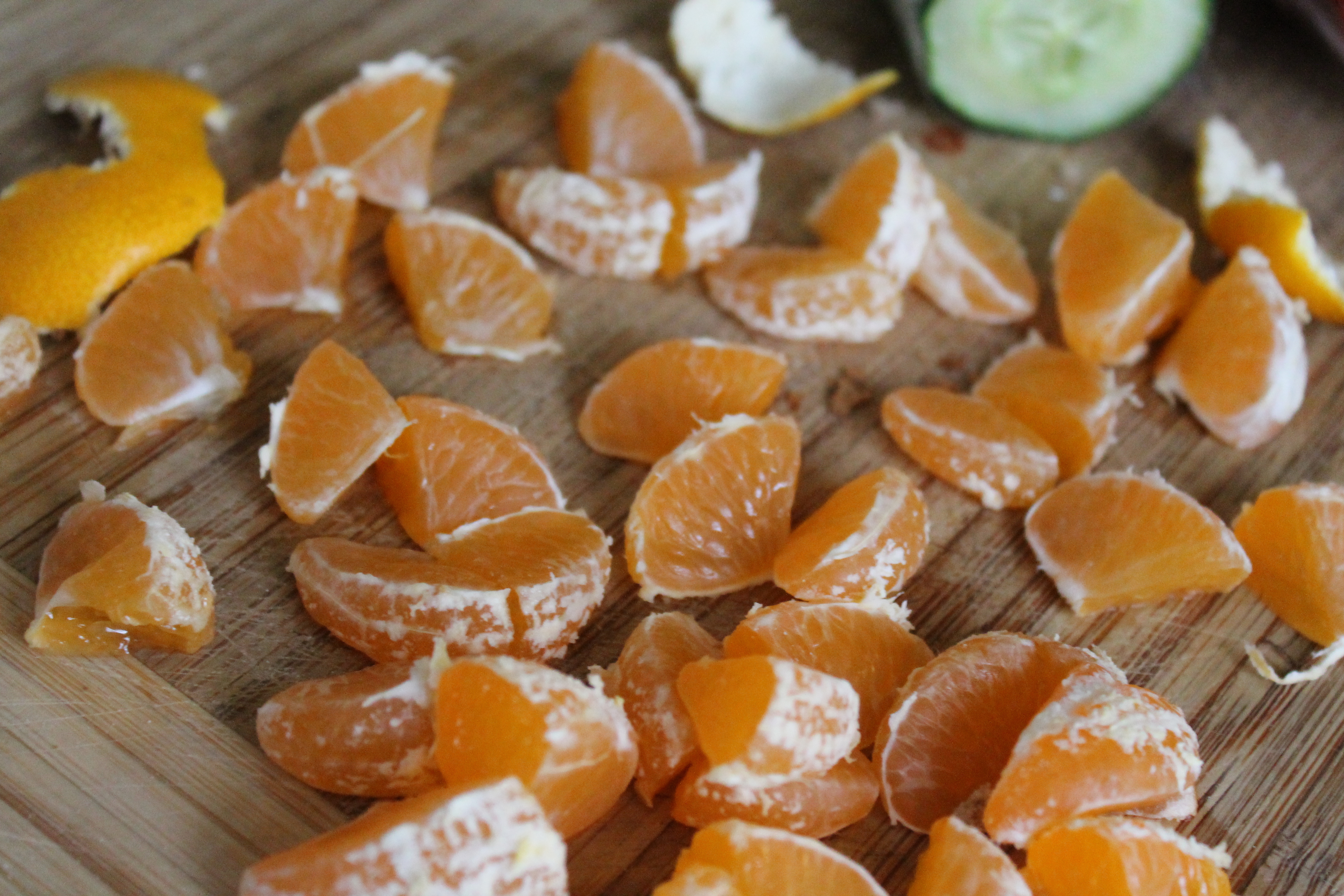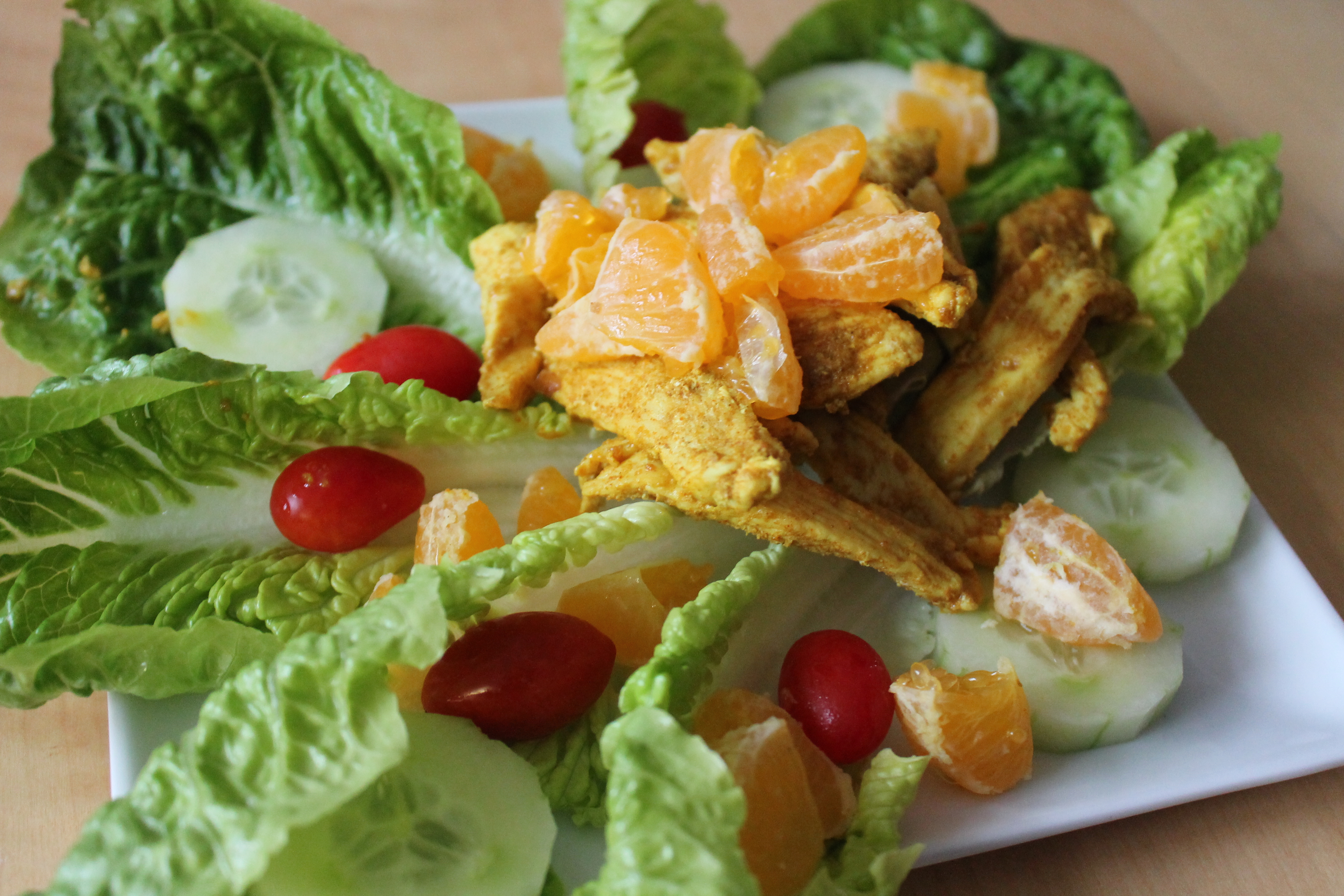 I got asked on Instagram to post my recipe for the chicken-tangerine-salad. Here we go: