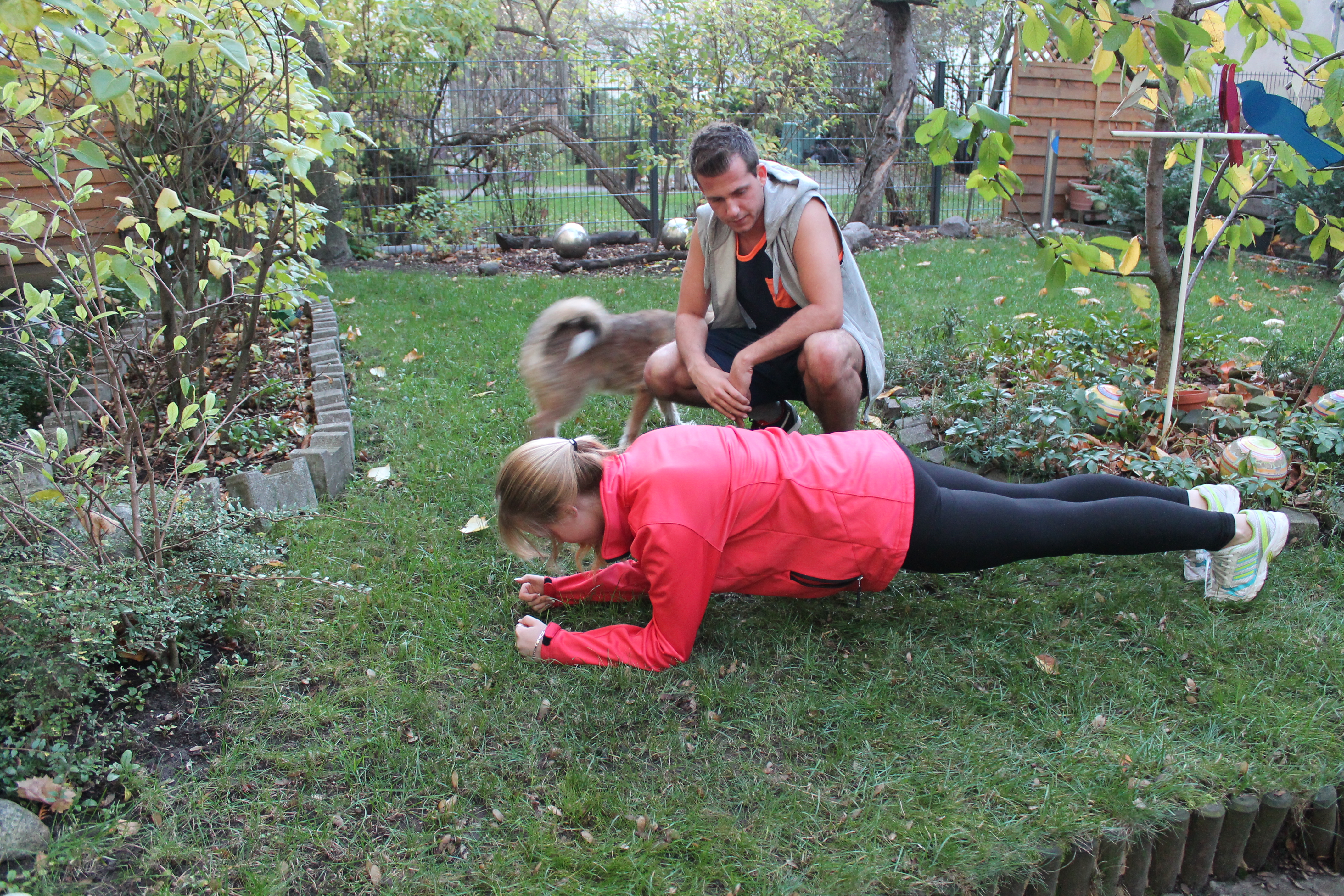 Ich weiß, das sage ich oft, aber das hilft auch einfach ungemein! Jemand der dich unterstützt und ähnliche Ziele hat, wird immer versuchen dich zu motivieren. Und wenn er es einmal nicht tut – motivier du ihn! Ich habe mittlerweile 2 feste Trainingspartner. Meinen Freund und meinen Hund. Mein Freund ist hauptsächlich im Studio mein Traininspartner. Dort hilft er mir und motiviert mich! Wenn ich hilfe brauche, steht er neben mir und probiert so gut es geht mich zu unterstützen. Wenn ich mal wieder zu Hause rum liege und zu nichts Lust habe sagt er: „Los jetzt, du wirst es bereuen wenn du liegen bleibst!“ und dann schnappt er mich und schleppt mich zum Studio. Und dafür bin ich ihm unendlich dankbar. Ohne ihn wäre schon so manches Workout unerledigt geblieben! Mein Hund ist aber ebenso ein guter Trainingspartner was Cardio angeht. Zum Joggen oder HIIT-Training kommt meine Hündin immer mit. Wenn ich schweißgebadet aufgebe, bellt sie mich an warum wir aufhören und nach Hause gehen. Und das mit 11 Jahren! Manchmal lege ich für sie noch eine extra Runde ein. Positiv für sie und mich 🙂 Es müssen also nicht immer Menschen eure Trainingspartner sein – Tiere können genauso motivieren. 🙂