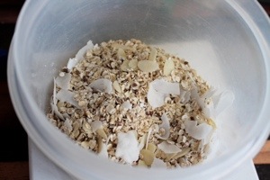 • Haferflocken mit allen Zutaten ( außer Kokosöl und Agavensirup ) mischen