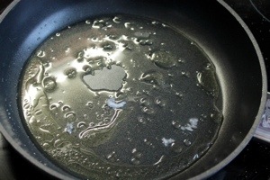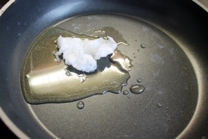 • Kokosöl und Agavensirup miteinander in einer Pfanne erhitzen