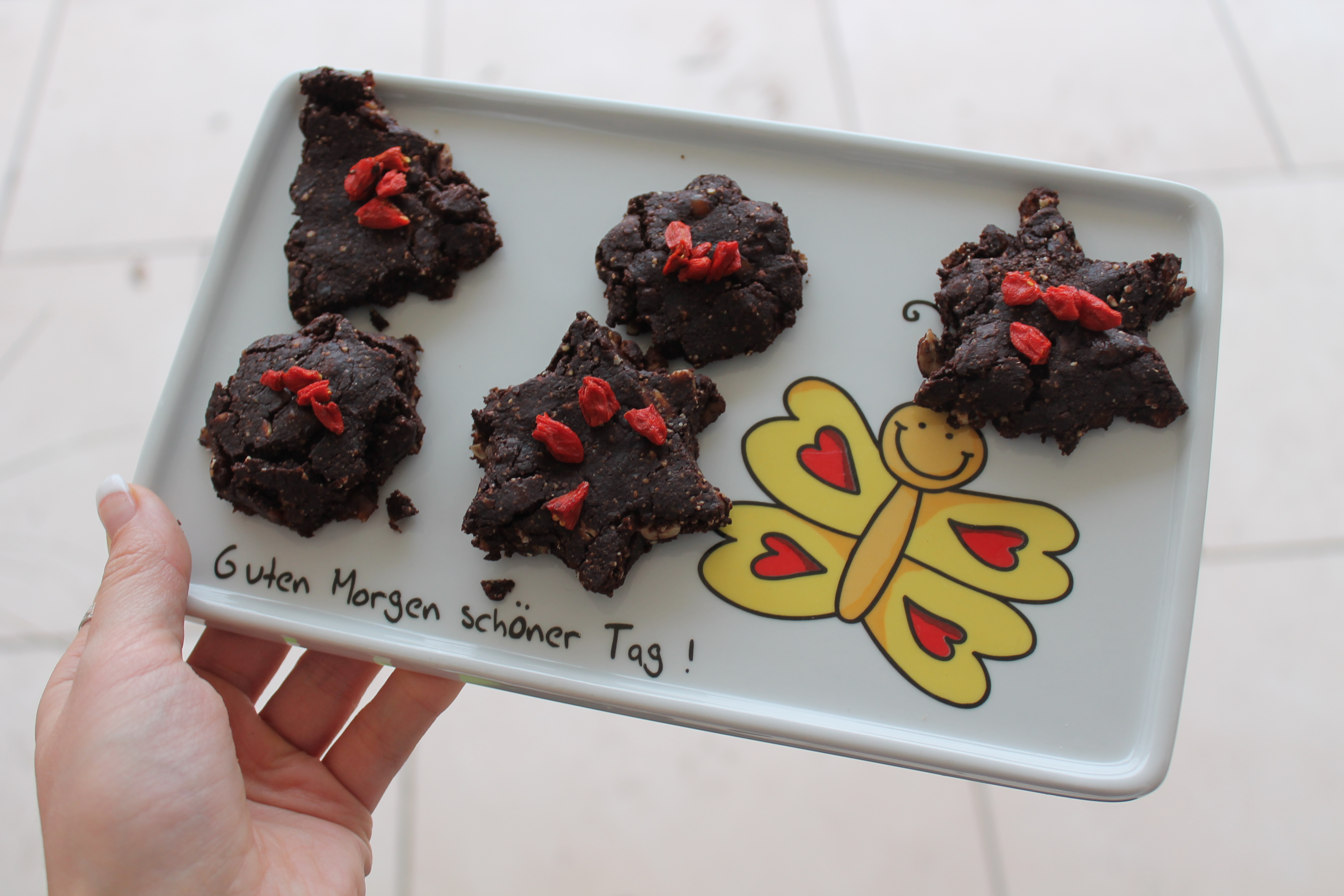 last week I tried another recipe out of the women’s health magazine. The vegan carob-stars. They turned out..well..not as good as I thought 😀 They taste not bad but as you can see they don’t look very delicious. That’s why I won’t try them again 😀 But of course I’ll share the recipe with you.