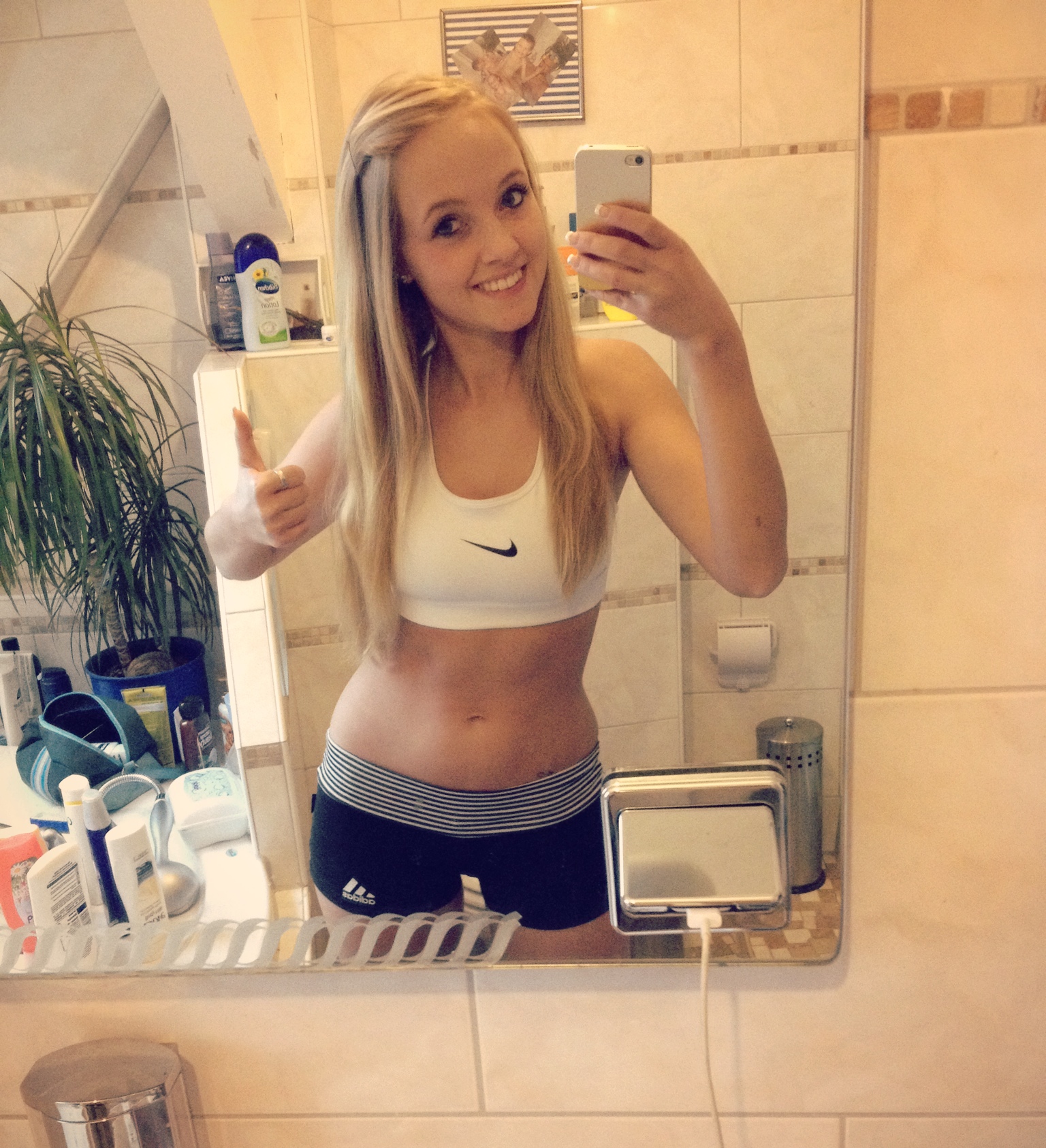 April 2013: Abi-Prüfungen! Viiiel Lernerei, doch dann ist es endlich geschafft. Die schriftlichen Prüfungen sind vorbei. Über Ostern war ich zwei Wochen mit meinem Freund bei meinen Eltern. Dort lernten wir für unsere Prüfungen ( Ich Abitur, er Abschlussprüfungen für seine Ausbildung. ). Im April standen einige Geburtstage an, unter anderem der meiner Mutter. Wenn ich nicht gelernt habe, war ich also auf Parties. Nach den Prüfungen hatte ich wieder mehr Zeit, auch für Instagram. Bis dahin war mein Profil nicht bekannt, ich hatte zwar 900 Follower, aber das waren meistens irgendwelche Fake-Profile und sowas. Da ich eh nur Bilder aus meinem täglichen Leben gepostet habe war mir das auch egal. Irgendwie, wie es halt so ist, bin ich auf Vanessa’s (Vanezia_Blum) Profil gestoßen. Ich war beeindruckt davon, wie viel sie abgenommen hat, das hat mich daran erinnert, dass ich selbst mehr als 10 Kilo im Jahr 2012 verloren hatte. Ich betrachtete mich im Spiegel und stellte fest, dass sich über Weihnachten und Abizeit einiges an Fett angesammelt hat, was ich vorher nicht bewusst mitbekommen hatte. Ich war schockiert darüber als ich mich auf die Waage stellte und 4 Kilo mehr als gedacht vorfand. Ich wusste, dass das unmöglich Muskeln sein konnten. Ich zögerte nicht lange und schleppte meinen Freund zu H&M um mir ein Sportoutfit als Motivation zu zu legen. Wenn ich mir heute das Bild anschaue ( folgt unter dem Text ) bin ich begeistert was ich seitdem aus mir gemacht habe.