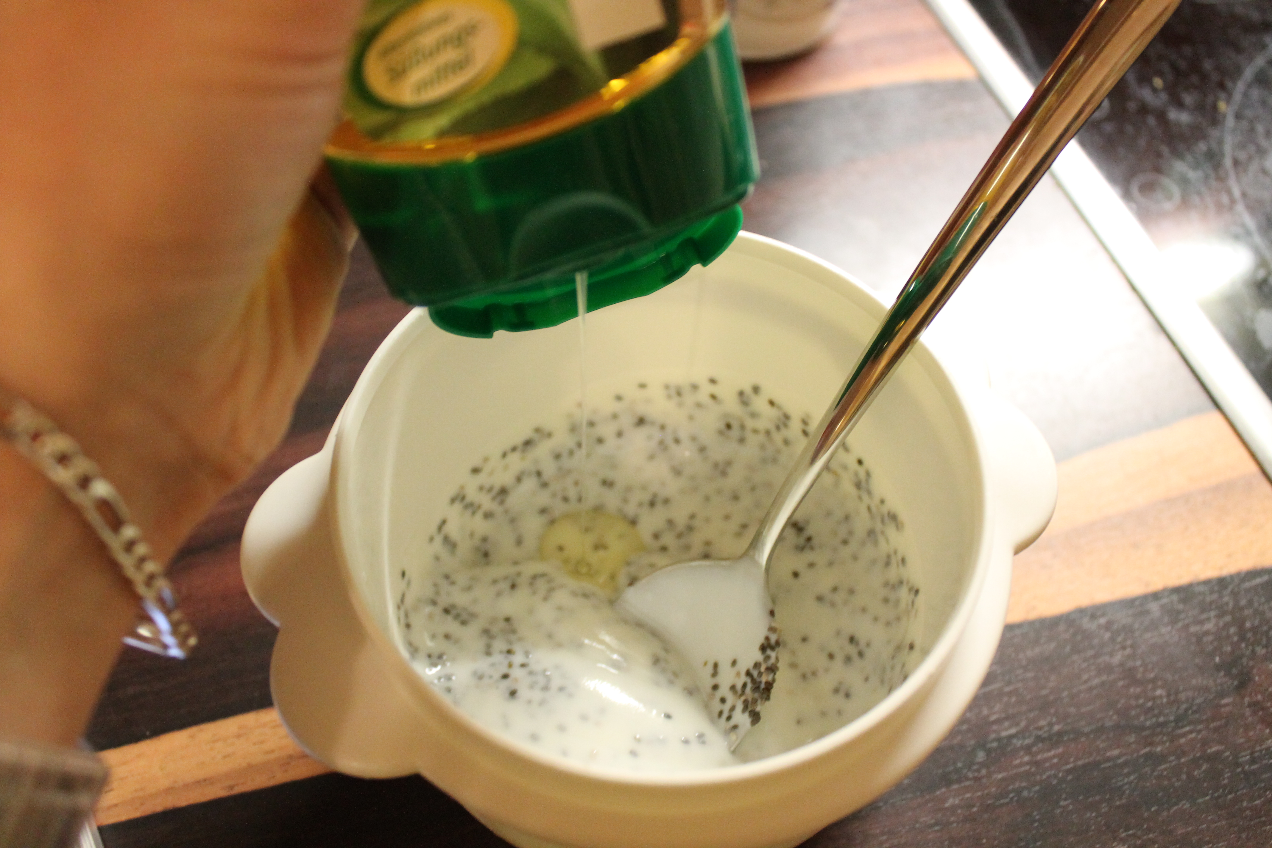 Jetzt zum Rezept. Ich habe meinen Pudding über Nacht im Kühlschrank quellen lassen, es reichen allerdings auch wenige Stunden