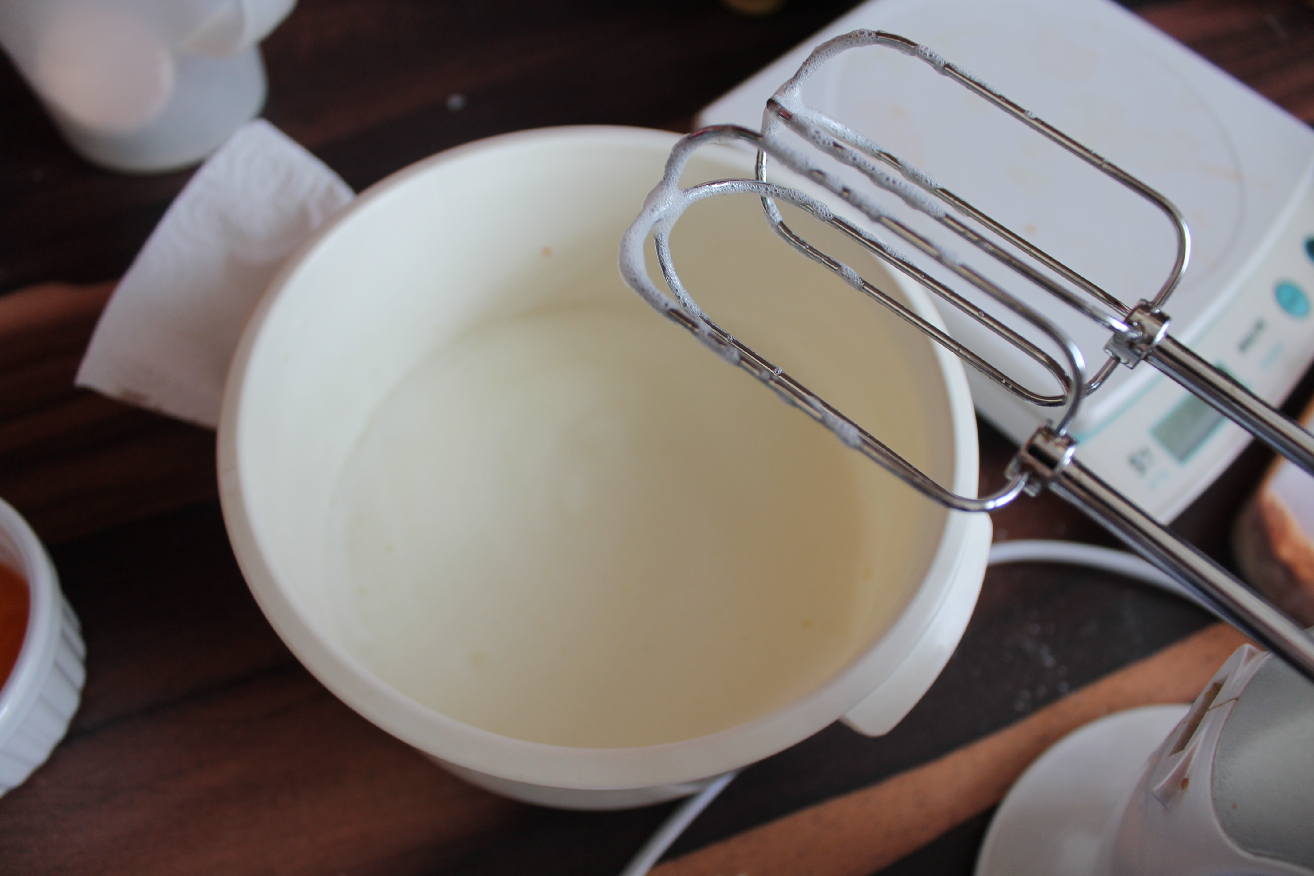 - Mix flour, one egg, milk, curd, cocoa, whey and baking powder