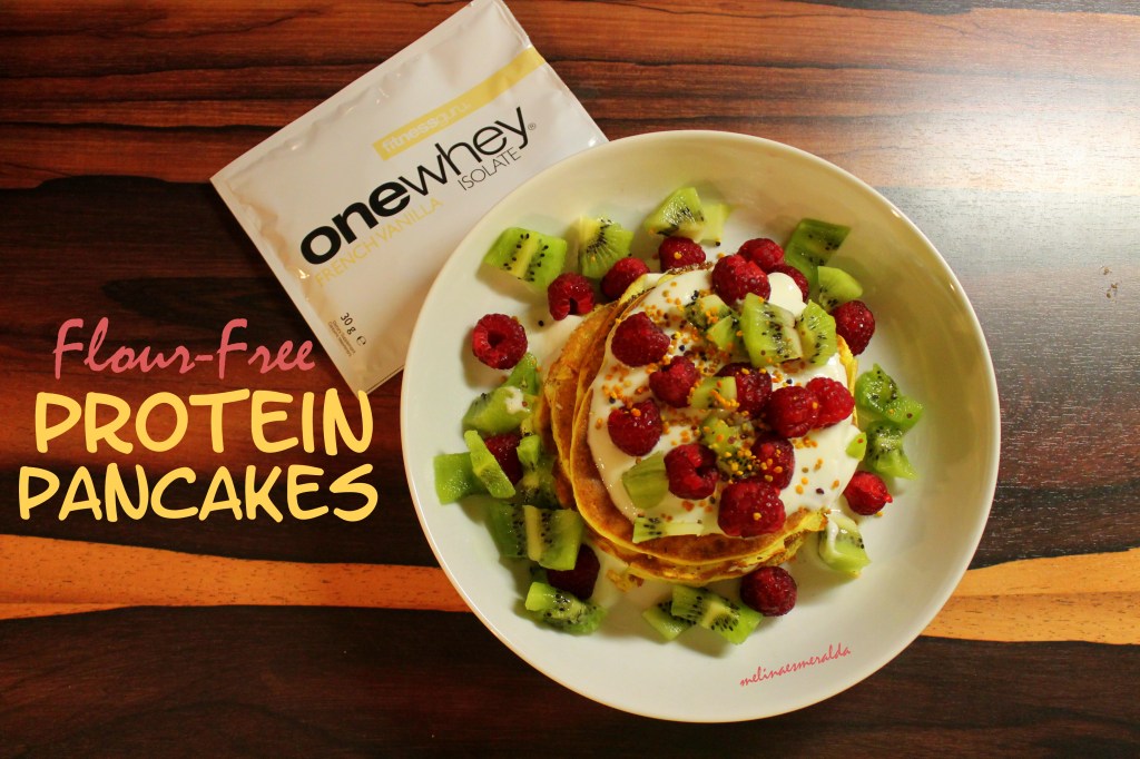 I hope you had a great day! Today we had real april weather in berlin! At first I woke up with sunshine and when I went to university it was raining so bad! Not funny! But my mood was great anyways. Today I got a new workout schedule which really motivates me to give my very best everytime I’m at the gym. After a great upper body session I decided to treat myself with a sweet dinner. I made flour-free protein pancakes with the best whey from Fitnessguru.