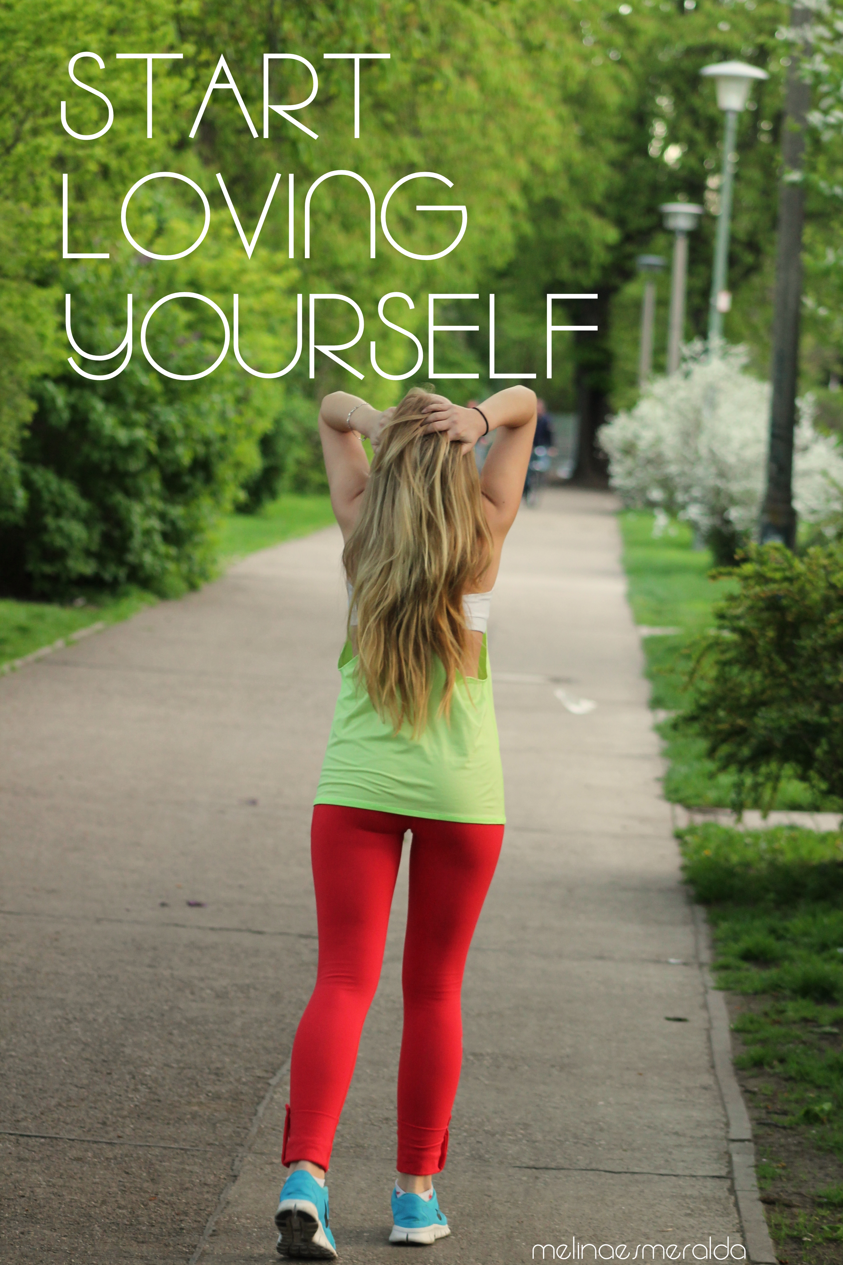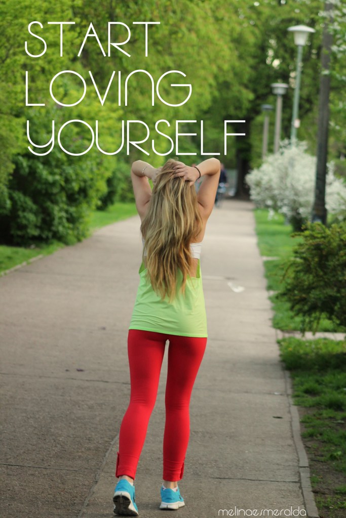 Also für die meisten Menschen da draußen komme ich wahrscheinlich sehr selbstbewusst rüber (via Instagram etc.) und wirke sehr glücklich, immer positiv und super zufrieden mit mir selbst. Das stimmt auch zu 90%. Es gibt Zeiten, da bin ich super stolz auf mich, fühle mich pudelwohl in meinem Körper und würde am liebsten im Bikini rumlaufen um zu zeigen was ich erreicht habe. Dann gibt es da aber leider auch die restlichen 10%. Die bestehen aus Selbstzweifeln, Unzufriedenheit und dem Gefühl, sich am liebsten in einen Sack Kartoffeln zu verkriechen, da ich mich dort wohler fühle als in engen Anziehsachen.Ich weiß nicht warum genau jetzt wieder diese 10% auf mich zutreffen. Ich bin zurzeit alles andere als motiviert und seit langem esse ich nicht mehr so gesund wie ich es sonst tue. Mir fehlt die Lust zum Kochen und ich frage mich, ob es überhaupt Sinn macht so oft zum Sport zu gehen und sich 6 von 7 Tagen gesund zu ernähren, wenn es doch so viel schnelles ungesundes und leckeres Essen gibt. Versteht mich nicht falsch, ich liebe das Fitnessstudio und den „Healthy-Lifestyle“ immernoch und werde das natürlich nicht aufgeben, aber ich bin an einem Tief angelangt. Nur ich selbst kann mich da wieder rausholen. Ich habe niemanden der 24 Stunden am Tag bei mir ist und mir in den Arsch tritt, wenn es ums Essen geht. Ich habe ja schonmal erwähnt, dass ich nach dem Essen von Ungesundem Probleme habe wieder komplett darauf zu verzichten und genau das ist am Wochenende passiert. Ich hab zu viel Müll gegessen und seitdem erwische ich mich zu oft beim Schokolade mampfen oder Gummibärchen naschen. Das alles hängt wohl auch damit zusammen, dass ich momentan nicht zufrieden mit meinem Körper bin. Meine Beine sind zu dick, mein Bauch zu schwabbelig und meine Hüften zu breit. Aber wer gibt einem vor was schön ist und was nicht? Ist nicht jeder auf seine eigene Art und Weise schön? Ich habe mich zu diesem Text hier von der lieben und tollen Morena inspirieren lassen. Sie hat eine Aktion gestartet unter dem Motto #startlovingyourselfnow und ich finde diese Aktion bekommt viel zu wenig Beachtung. Lest euch am besten diesen Blogeintrag hier durch: #loveyourself