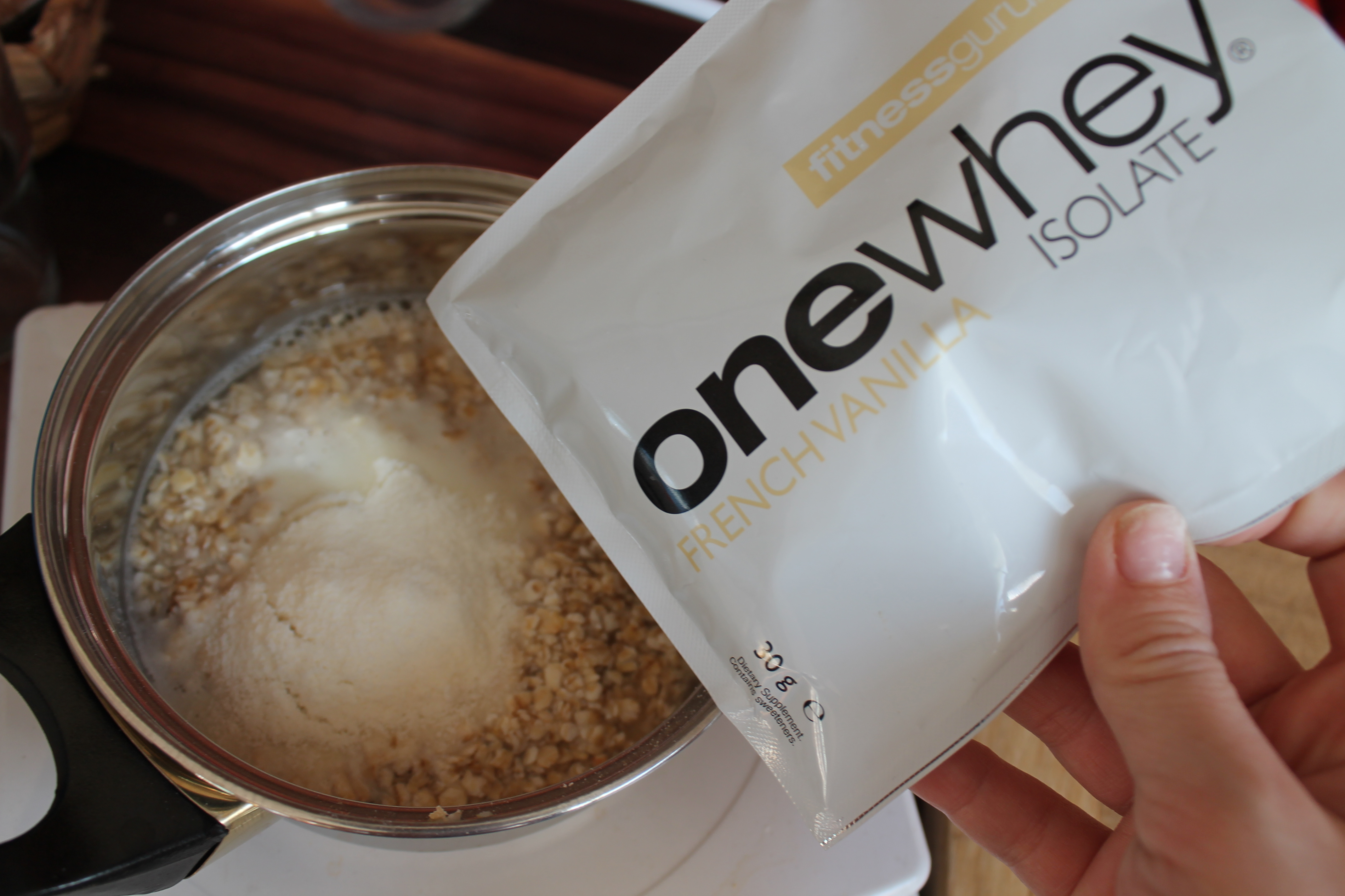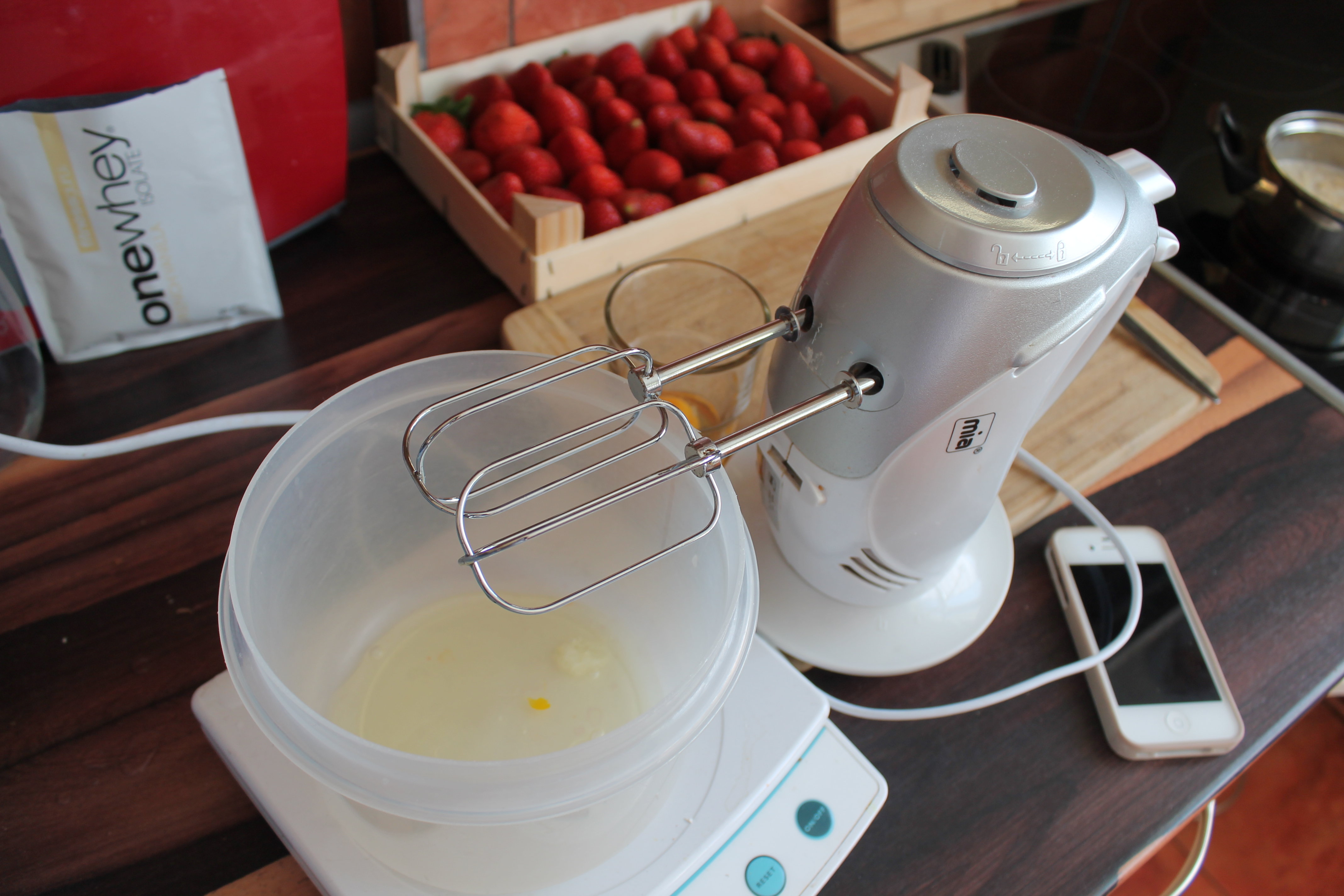 Dieses Protein kann man entweder durch Eiweiß oder Proteinpulver hinzugeben. Ich habe mich für beides entschieden.