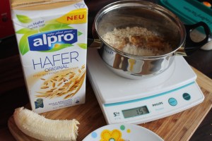 Und als letztes 150ml Hafermilch (oder Mandelmilch, Normale Milch …)