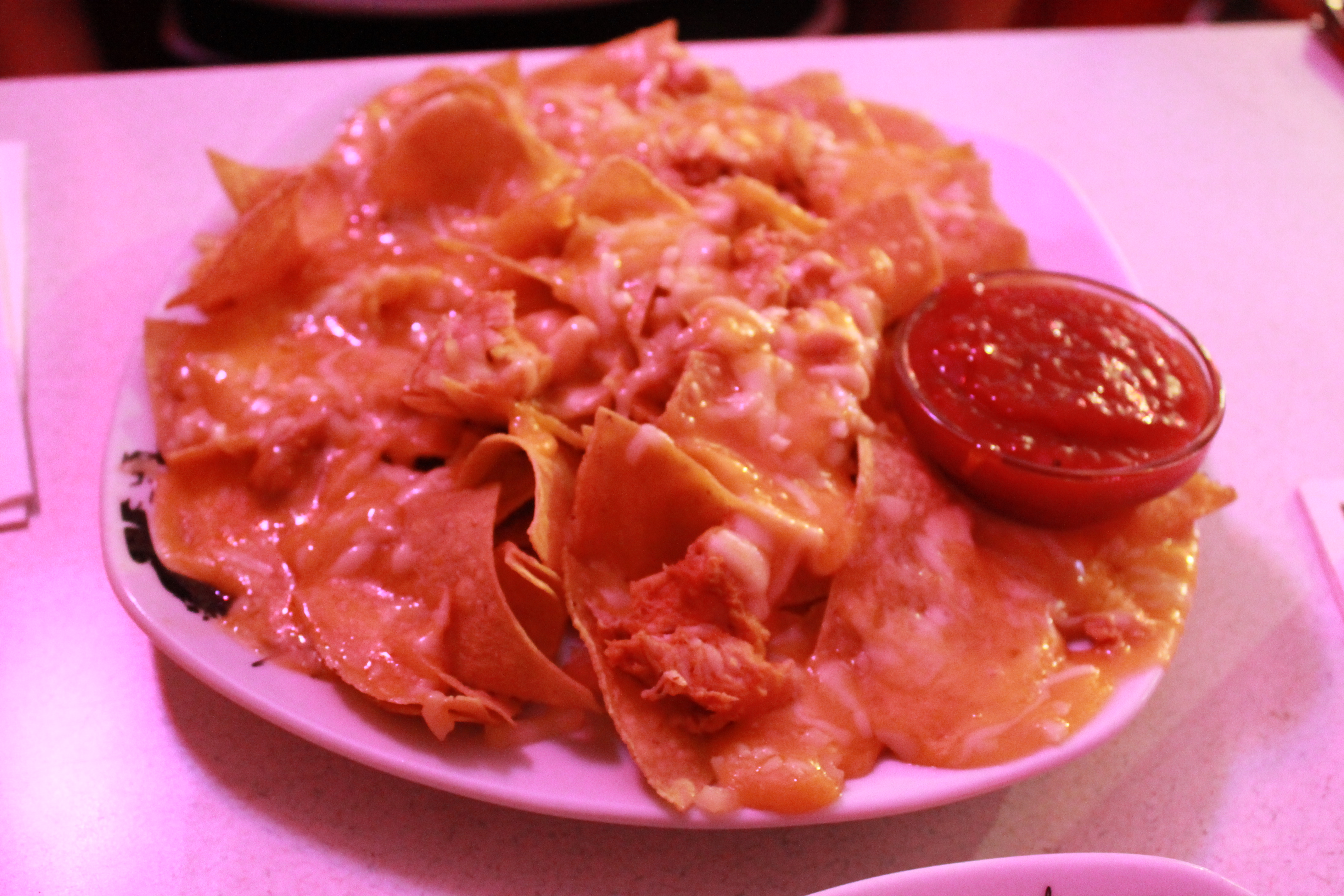 Mit einem großen Loch im Magen haben wir uns getroffen und uns zwei Vorspeisen bestellt: Zwiebelringe und Nachos mit Käse und Hühnchen.Ich liiiiiiebe Zwiebelringe und diese waren einfach unglaublich lecker, genau wie die Nachos.