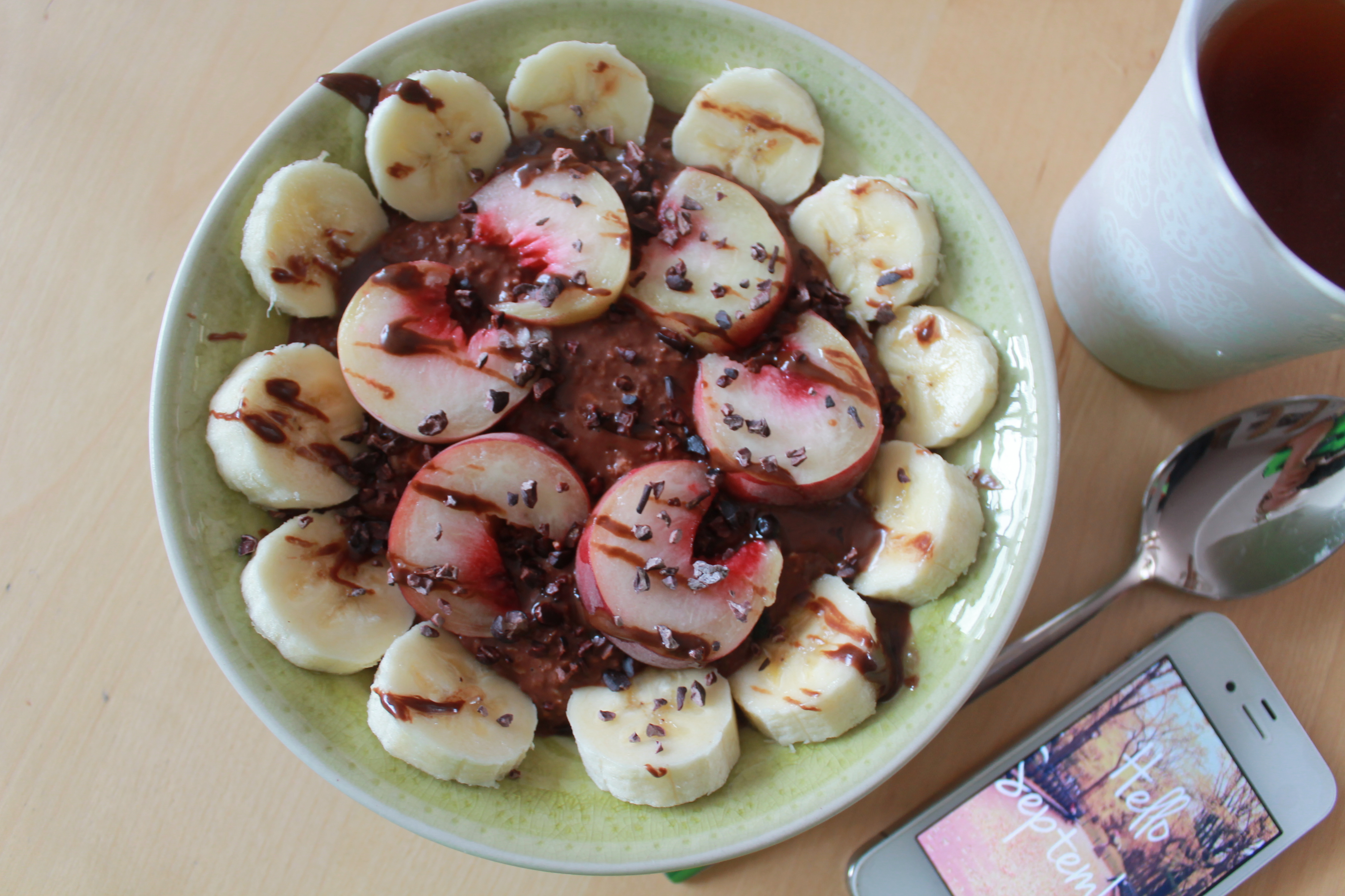 I started my day with a big bowl of healthy nutella oatmeal and because a lot of you asked for the recipe I thought I should share it again because it was so long ago I posted it on my blog, nobody finds it.