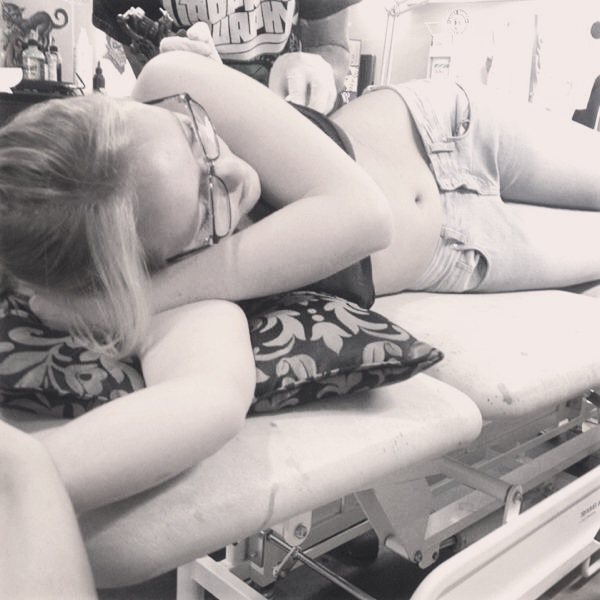 heute habe ich endlich mein zweites Tattoo bekommen! Ich war ja sooo aufgeregt, da es an den Rippen bekanntlich an meisten wehtut. Ich muss ehrlich sagen, klar tat es weh, aber nicht so schlimm wie alle tun. Jeder hat ein anderes Schmerzempfinden und ich fand es definitiv aushaltbar! Ich musste weder weinen noch brauchte ich eine Pause. Am meisten tat es dort weh wo wenig Fett ist. Aber ich finde tättowieren sind angenehme Schmerzen die man gerne in Kauf nimmt. Was ich mir hab stechen lassen zeige ich euch in ein paar Tagen, sobald es verheilt ist. 🙂