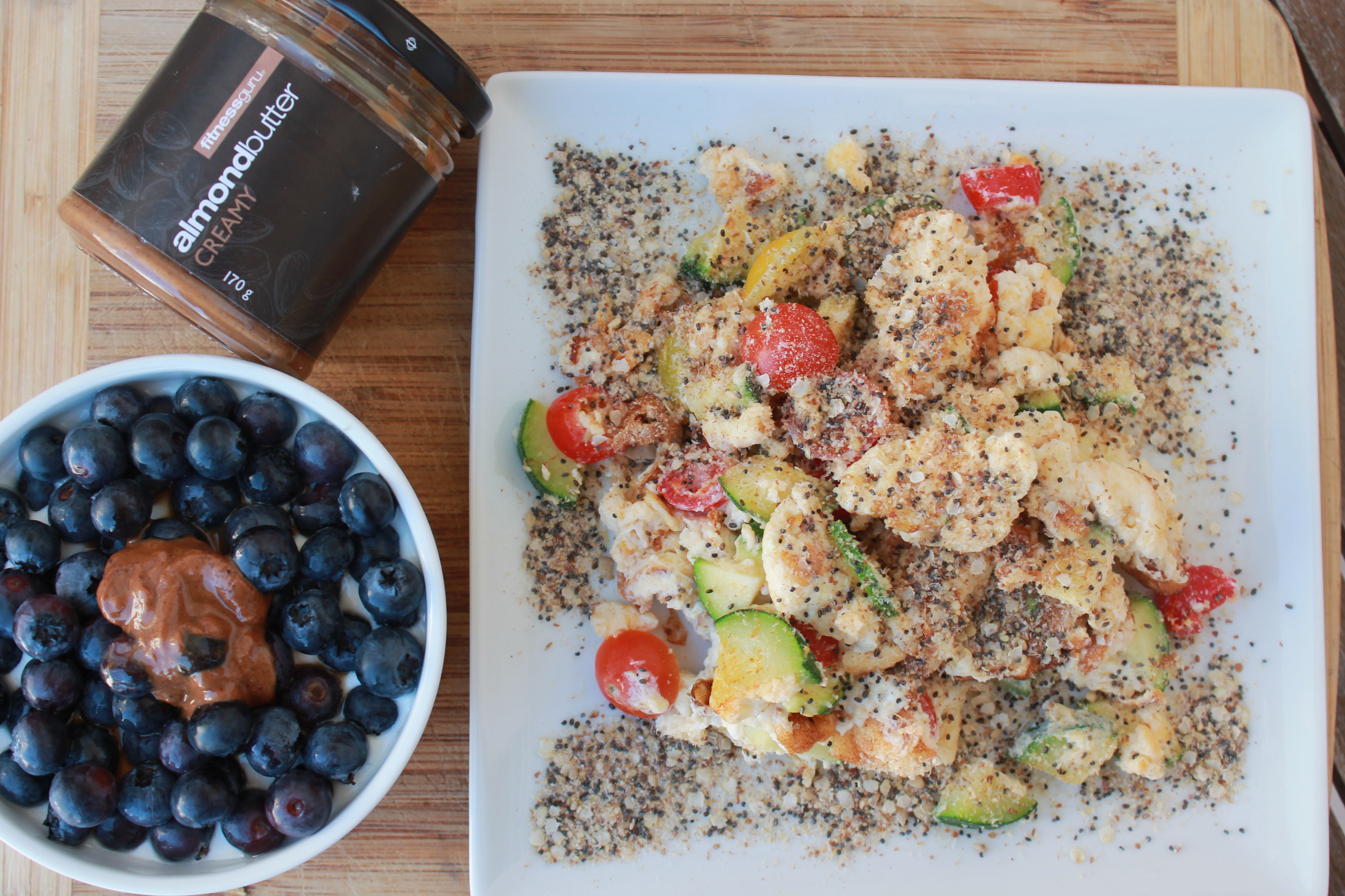 As a dessert I had 240g greek yoghurt, 120g blueberries and 15g almondbutter from fitnessguru.