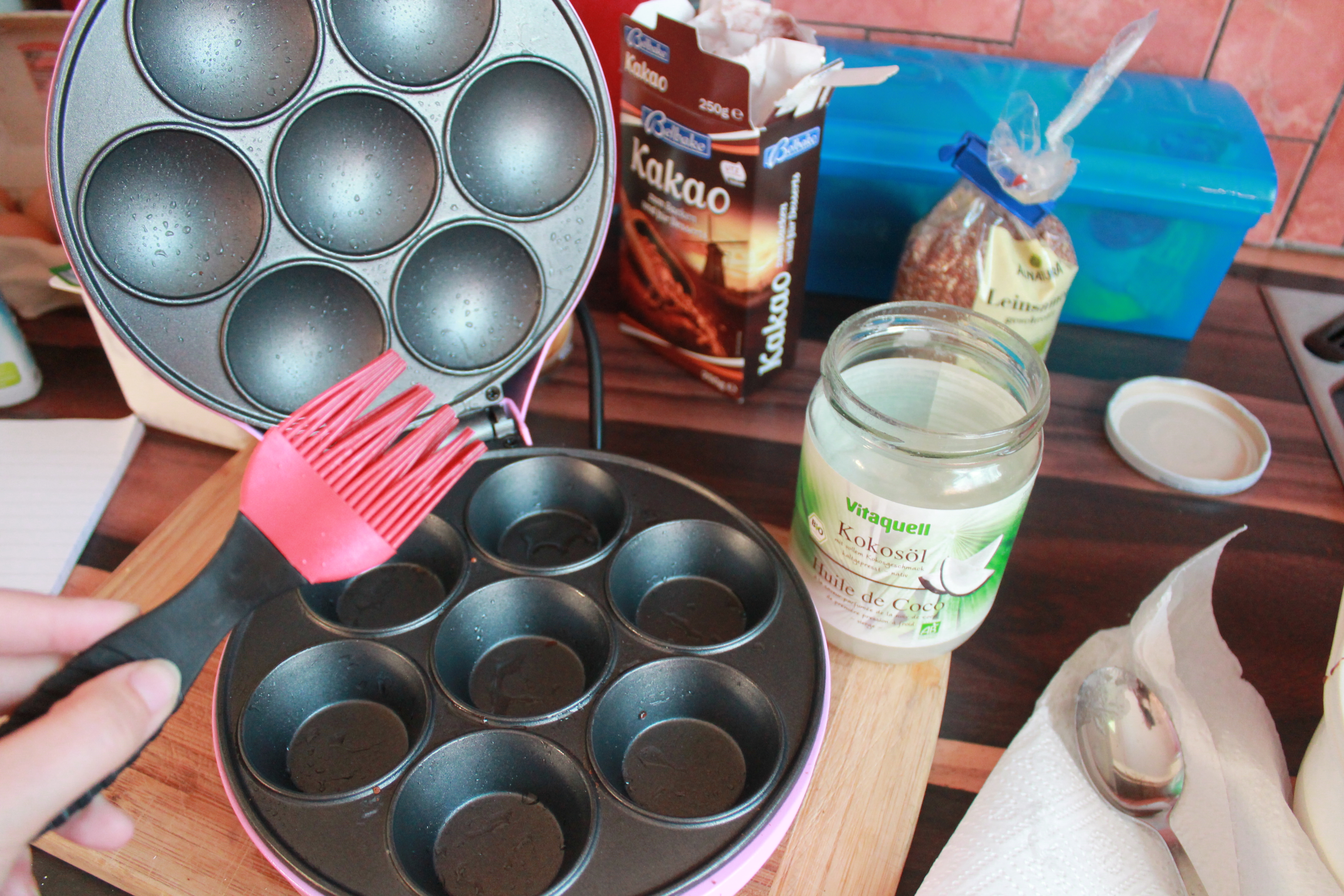 Den Cupcakemaker mit Kokosöl einfetten und Teig hineingeben.