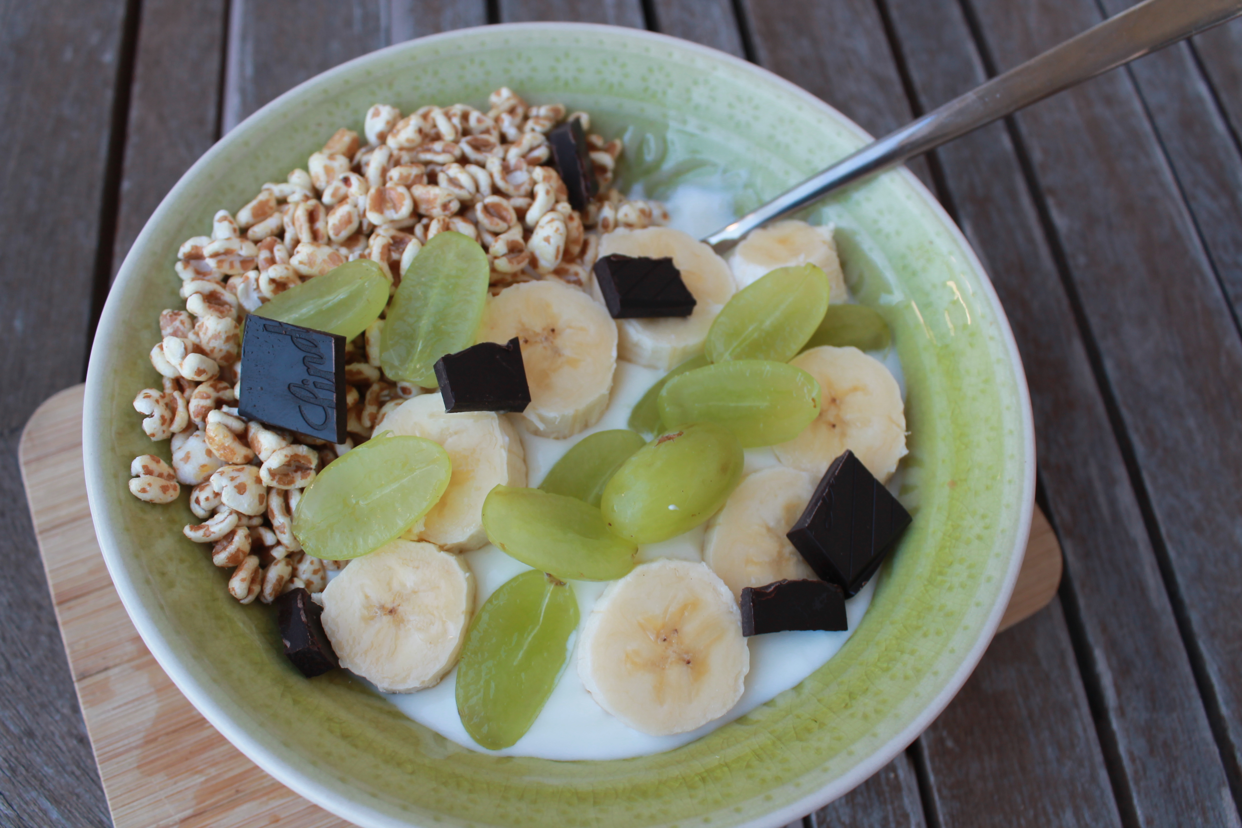 I’m really motivated today and started my day with a bowl of greek yoghurt, bananas, grapes, puffed spelt and 90% dark chocolate.